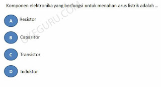 Langkah pertama, buat dahulu satu slide yang isinya terdiri dari empat shape untuk pilihan dan dilengkapi sisipan teks untuk pertanyaan dan keterangan pilihan. Hasilnya nanti seperti gambar di bawah ini.
