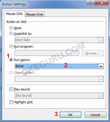 Klik Run macro: kemudian pilih Benar dan klik OK.