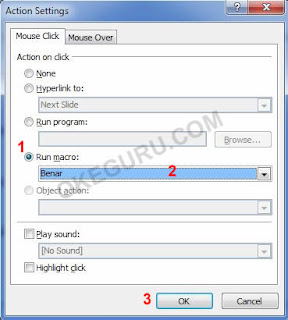 Lakukan hal yang sama untuk seting pilihan B, C, dan D. Hanya pilihan Run macro nya diseting Salah.